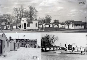 Z is for Zimmerman Cabins. As travel by automobile increased, overnight accommodations were needed for families and business men. In 1932 Mr. Henry Zimmerman built eight separate cabins at the intersection of Willmar Avenue and 1st Street. Along with the cabins a full service Phillips Gas Station was located on the site. The distinctive white clapboard and red trim cabins were furnished with beds, a basic kitchen and outdoor bathroom facilities. These cabins were located where right across from Walt’s and Walgreens on First Street in City of Willmar, Minnesota.