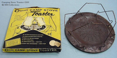 | C is for Camping. Kandiyohi County is known for its make lakes, trails and great outdoor recreation. There are many places to camp and explore the great outdoors of our county. We have Sibley State Park and our beautiful county parks: Kandiyohi County Park 3 Games Lake County Park Green Lake County Park Big Kandiyohi County Park West & Big Kandi Park East. It was the lakes and our beautiful land that brought people to this county. Prior to settler contact, the Dakota and Ojibway would come to our county to hunt and fish the land. Camping has been going on in this area for many years. This toaster is used on top of a cook stove to make toast when camping. It was donated by Sadie Miner and is from the 1960s |