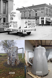 U is for Unusual Item. Does anyone else have an 8 foot coffee pot? Well the Kandiyohi County Historical Society does! The coffee pot first appeared during Willmar's town celebration Kaffe Fest parade. For over 40 years, Willmar would celebrate "Kaffe Fest" every summer. During a survey by the Willmar Tribune in the 1940s, it was found that coffee consumption in Willmar was in the "astronomical" figures. This, and an organization called the Willmar Saucer Drinking Society started the first Kaffe Fest in 1946. It was reported that 15,000 to 20,000 cups of coffee were served during the three-day event in 1946. The word "Kaffe" is not a typo, rather is the Swedish spelling for coffee. Kaffe Fest changed to Willmar Fests in the 1980s. This pot had been missing in action until 2018 when it was found via a Facebook post! The owner donated it to the Kandiyohi County Historical Society and we are working on restoring it for all to enjoy! We would like to thank Chappell Central, Inc. for their generous donation of time and materials to get the coffee pot back in good shape. Currently, Hanson Silo Company is in the process of powder coating it white! It is getting closer to coming to the Historical Society for its final stop. This year is the 75th anniversary of the first Kaffe Fest and it is fitting that the coffee pot has found its way back to Willmar! We are asking for donations to help with the cost of this process! We would like to raise $1000. Please consider making a donation for the restoration of the Kaffe Fest coffee pot!